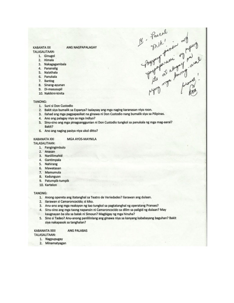 Bakit nagdaos ng piging ang mga estudyante. Pinalabas niyang bayani ang Kapitan Heneral sina Padre Irene. El fili buod Polytechnic University of the.
