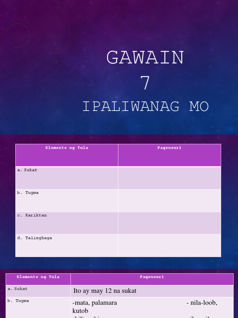 Read free for 30 days. Ako ang malakas na agos na tatangay sa iyo Ako ang makapangyarihang sutlang-puno ng bulak na matayog sa ibang. Matapos mong mabasa ang tula hangad kong magagamit mo sa pang-araw-araw na buhay ang aral na iyong natutuhanPANUTO.