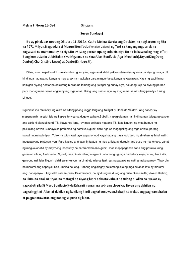 Ipinaalam niya ito sa mga anak. BUOD NG PELIKULANG SEVEN SUNDAYS PAMAGAT. CATHY GARCIA MOLINA TAGPUAN.