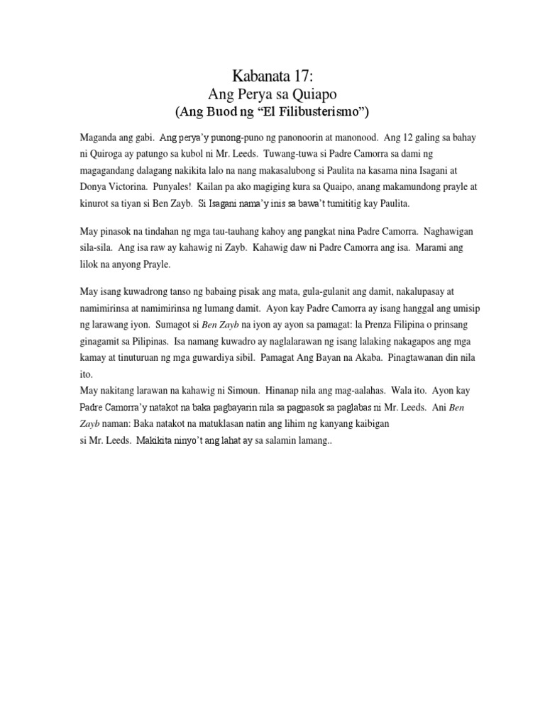 Read Kabanata 17 from the story El Filibusterismo Buod at Aral by Raimu-san RhymingRyme with 6 reads. Kabanata 16 Kabanata 18. Chapter 19 El Filibusterismo published in Ghent yriex.